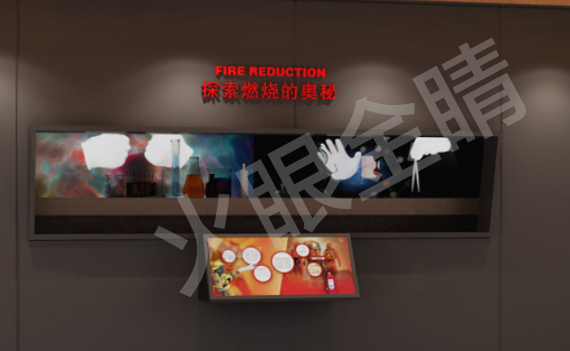 燃燒與科學(xué)幻影成像是基于“實(shí)景造型”和“幻影”的光學(xué)成像結(jié)合,將所拍攝的影像射到布景箱中的主體模型景觀中,演示故事的發(fā)展過(guò)程。本產(chǎn)品是以“火災(zāi)防控”為主題,通過(guò)“魔術(shù)”和“科學(xué)實(shí)驗(yàn)”表演方式的演示視頻,同實(shí)物搭建的試驗(yàn)舞臺(tái)布景模型相結(jié)合,生動(dòng)地將“火災(zāi)防控原理”的抽象概念具體化演繹出來(lái),讓觀看者易于接受,學(xué)習(xí)相關(guān)知識(shí)。本展項(xiàng)共6組實(shí)驗(yàn)視頻,逐一把火災(zāi)防控原理知識(shí)的方方面面漸層式地表現(xiàn)完整
