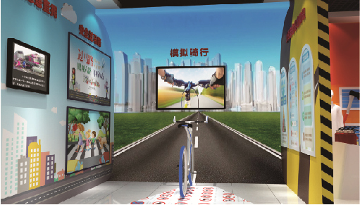 模擬非機動車駕駛系統(tǒng)采用三維投影技術,真實還原騎行過程中所遇到的各類問題,以及突發(fā)問題的解決方法,體驗者根據(jù)操作仿真自行車,模擬路面行駛過程,達到了解交通知識,掌握安全騎行方法的目的。
